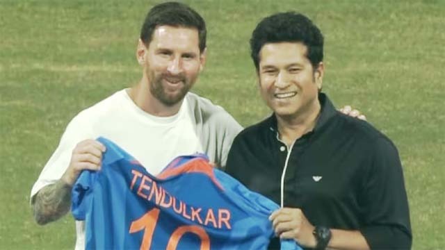 वानखेड़े स्टेडियम में जैसे ही मेसी पहुंचे, पूरा स्टेडियम “मेसी-मेसी” के नारों से गूंज उठा. फैंस की खुशी तब और बढ़ गई जब महान क्रिकेटर सचिन तेंदुलकर भी कार्यक्रम में शामिल हुए और महाराष्ट्र के मुख्यमंत्री देवेंद्र फडणवीस के साथ बैठे नजर आए. तेंदुलकर के पहुंचने के कुछ ही देर बाद अर्जेंटीना के महान खिलाड़ी मेस्सी अपने इंटर मियामी टीम के साथियों लुइस सुआरेज और रोड्रिगो डि पॉल के साथ मैदान पर उतरे। शायद पहली बार ऐसा हुआ जब वानखेड़े पर ‘सचिन…सचिन’ के बजाय ‘मेस्सी…मेस्सी’ के नारों की आवाज तेज थी। अनगिनत दफा वानखेड़े पर ‘सचिन… सचिन’ के नारे गूंजे हैं और यहां तक कि उस समय भी जब यह क्रिकेट आइकन स्टेडियम मौजूद भी नहीं होता। लेकिन जब शाम को जब महान बल्लेबाज को मेस्सी के साथ मंच सांझा करने के लिए बुलाया गया तो फिर से ‘सचिन… सचिन’ के नारों की आवाज तेज हो गई।