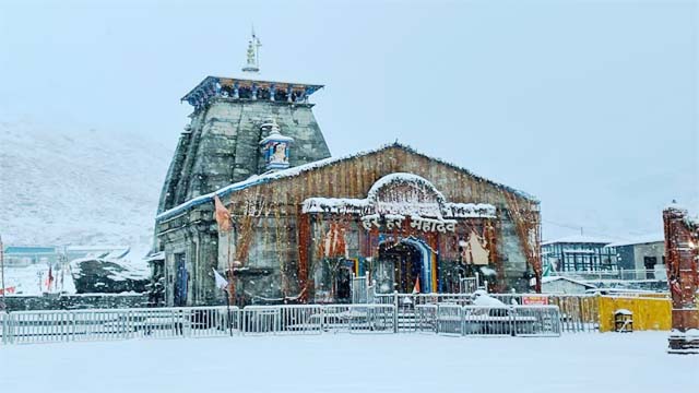 बदरीनाथ में हुई सीजन की पहली बर्फबारी, चारों तरफ बिछी बर्फ की चादर